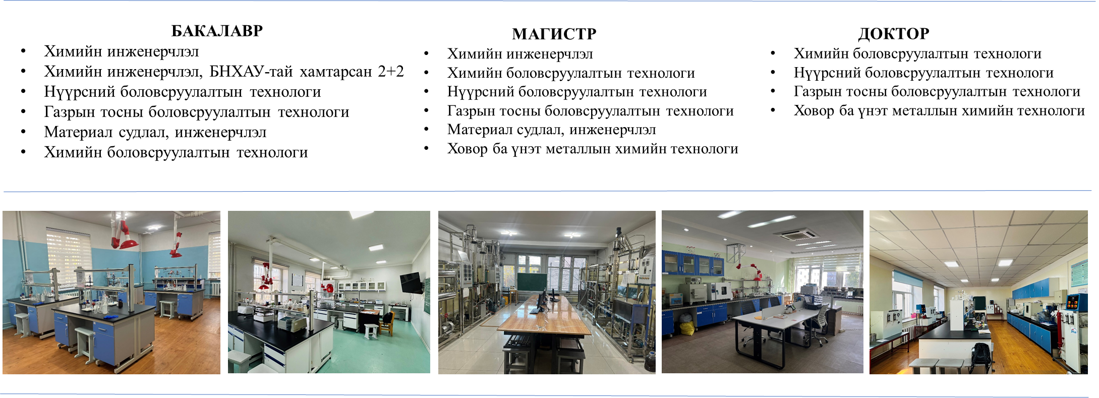 Манай тэнхим нь 1997 онд Монголын анхны химийн технологич мэргэжилтэн бэлтгэн гаргасан бөгөөд түүнээс хойш нийт 1300 гаруй бакалавр, 250 гаруй магистр, 20 гаруй доктор зэрэгтэй инженер технологичид бэлтгэжээ. Мөн манай төгсөгчид нь ОХУ, Япон, БНХАУ, АНУ, Өмнөд Солонгос, Тайван зэрэг улсуудын их сургуулийн ахисан түвшний хөтөлбөрт суралцаж магистр, докторын зэргээ амжилттай хамгаалсан байна.