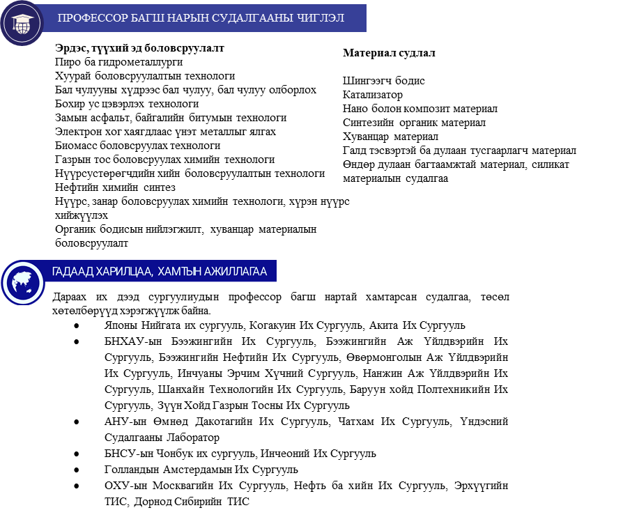 - Дэд профессор, доктор (Ph.D), дэд профессор Д.Илчгэрэл